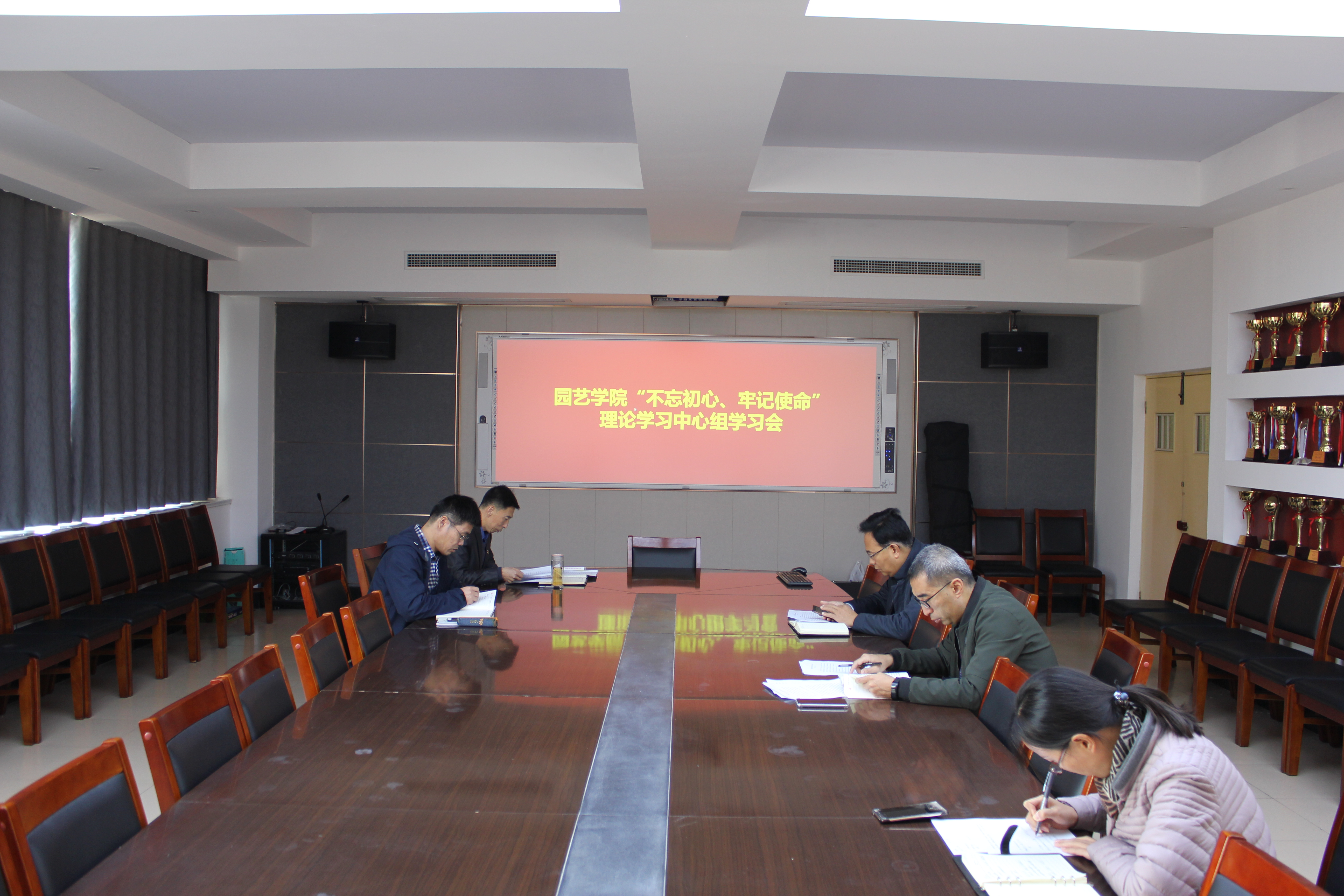 11月18日,3003新葡平台党委理论学习中心组在生物楼会议室,专题学习党的十九届四中全会精神。3003新葡平台党委书记隋成竹,副书记、副院长王春晓,党委委员、副院长王永章,党委委员、团委书记刘燕杰,党委委员、第一党支部书记张玉刚参加会议。
