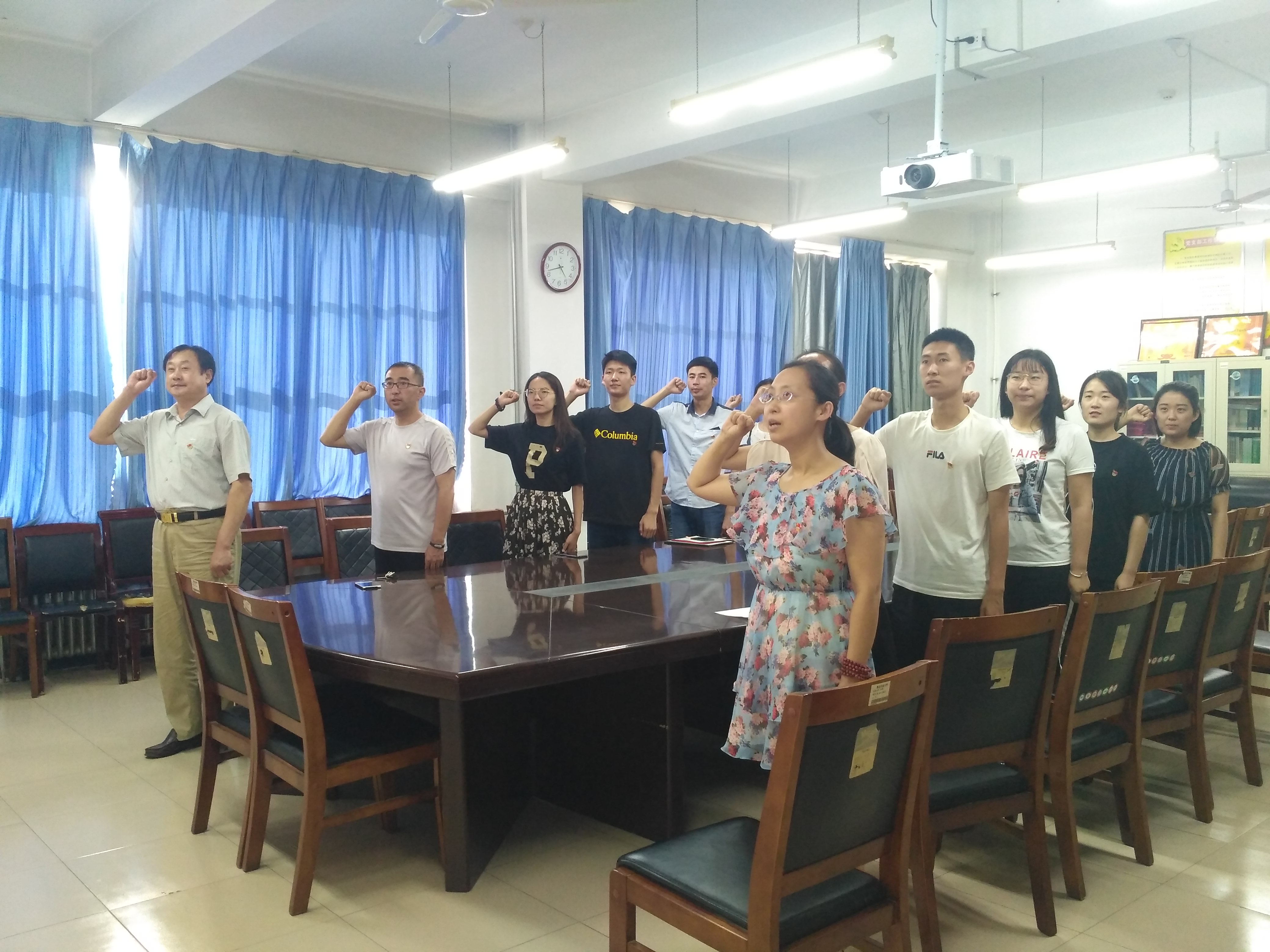 6月29日,3003新葡平台在会议室举办新发展党员入党宣誓、老党员重温入党誓词仪式。3003新葡平台党委书记刘培利、党委副书记王春晓、第三党支部书记刘燕杰、第四党支部书记宋颖芳以及在校学生党员参加宣誓,会议由刘燕杰主持。
