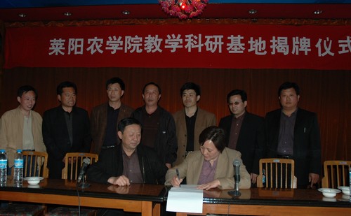 5月7日,新葡官网在山东登海种业股份有限公司西由种子分公司建设学院教学科研基地举行揭牌仪式,我院院长王然与西由种子分公司总经理王均邦分别在建设教学科研基地的协议书上签字,并共同为基地揭牌。莱州市科技局、农业局、农科院等单位负责人出席了揭牌仪式。