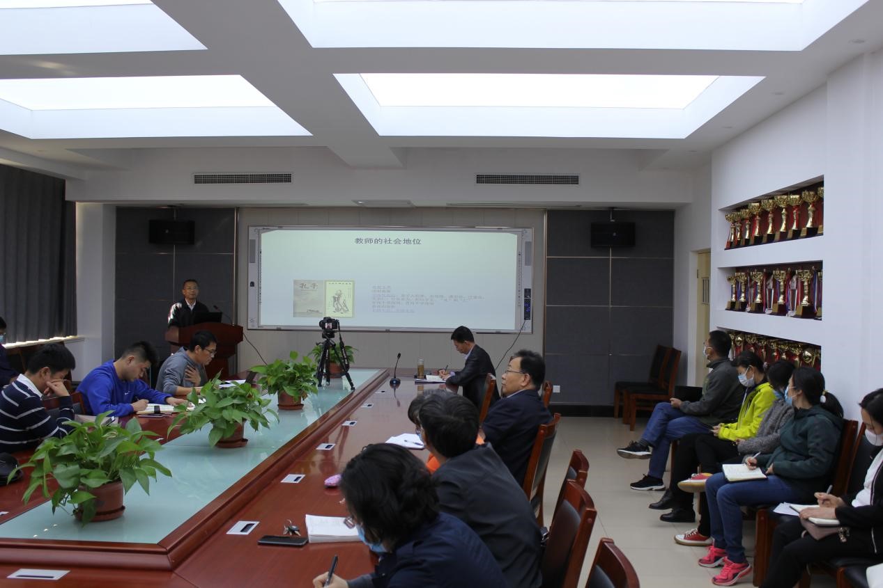 刘维信教授围绕如何加强师德师风建设、如何深化课程思政改革、如何提高课堂教学质量等问题,与参会老师进行深入交流。他首先回顾了教师社会地位的历史演变,展现了中华民族从古到今始终坚持尊师重教的良好传统,强调教师是“太阳底下最光辉的职业”,当今社会教师的社会地位和人们对教师职业的期望前所未有,进而引申阐述了加强师德师风建设的重要性;他以师德师风的不良表现为案例,呼吁广大教师要恪守职业道德规范,切实做到爱国守法,敬业爱生,教书育人,严谨治学,服务社会,为人师表,争做“四有”好老师;刘维信结合自身多年的教学经验,就如何正确处理科研与教学的关系,如何深化课程思政改革,如何从细节做起讲好每一堂课,做了详细讲解。他倡导广大教师应守好讲台主阵地,把立德树人放在首要位置,将课程思政元素春风化雨、不知不觉融入到课堂教学中去。强调“用心”是教学的万能钥匙,要强化对学生培养的责任心和使命感。同时要深化教学方式方法改革,将概念性的东西用学生喜闻乐见、易于理解方式表达出来。他还就教案与教学大纲编写、PPT课件制作、板书技巧、课堂管理、实物教学、课业考核等具体环节,分享了自己的经验和思考建议。
