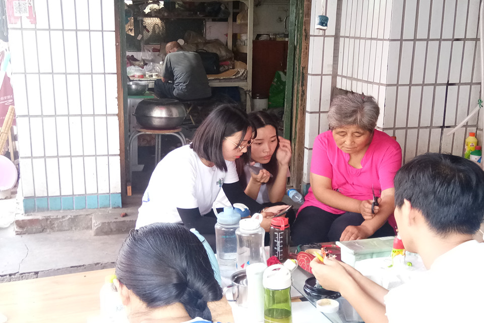 队员们正在听高桂英老人讲述自己的面塑故事 通讯员 王景涵 摄