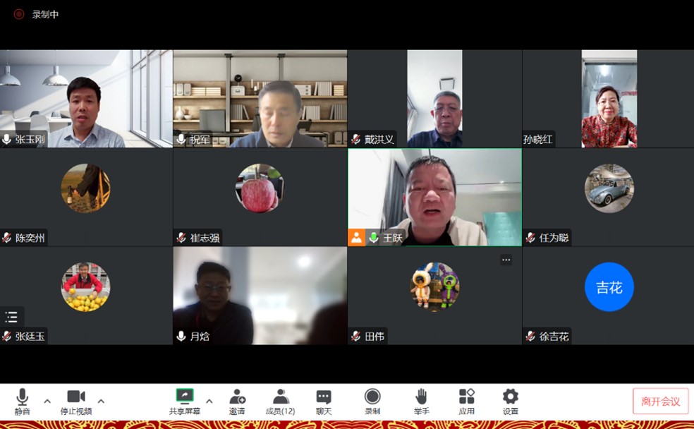 3月24日,3003新葡平台苹果育种团队与农夫山泉股份有限公司就新疆基地苹果发展问题进行了线上合作交流研讨会。国家苹果产业技术体系岗位科学家、山东省泰山学者特聘专家、苹果育种团队负责人、3003新葡平台张玉刚教授和戴洪义教授、祝军教授、团队其他成员和研究生以及农夫山泉股份有限公司农产品事业部总经理张伟、总工程师史永辉、总监张廷玉、农产品技术部经理任为聪、高级研究员王跃、研究员韩月、新疆基地经理崔志强、技术科科长王锐、技术科研究员程小波、采购科科长田伟等人参加了本次研讨会。