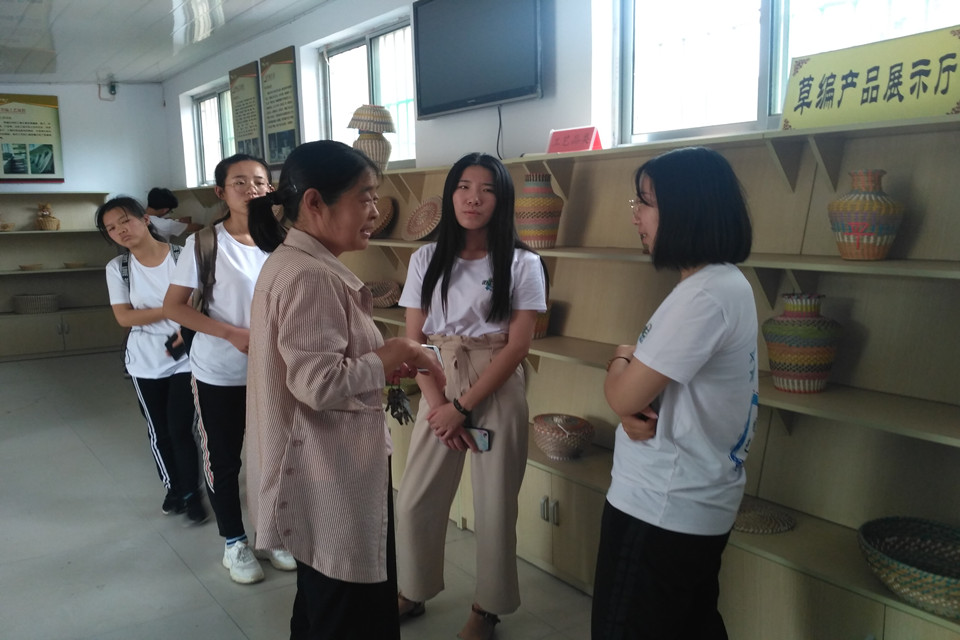 在草碾村负责人的介绍下,队员们随后来到寿光市草碾草编专业合作社,在草编产品展示区,大大小小的作品映入眼帘,有精致小巧的工艺品类,还有实用美观服饰类,50多件草编作品逐一展示。从原料的采集、处理,到产品的编织、晾晒,每一步都是纯手工制作。“我们的合作社是采取‘统一原料、统一编制、同一品牌、统一经营’的模式,在市场的带动下,草编的发展规模越来越大,从原先仅作为基本生活用品、补贴家用,到现在发展成村里大多数人的主要家庭收入,草编逐渐转向商品化、品牌化。”草碾村村书记向队员们介绍。除此之外,队员们了解到,外销的草编产品还可以根据客户需求量身定做,努力打造“私人定制”。 从“谋生”到“非遗”,实现了传统手工艺与市场的直接对接,在提高农民日常收入的同时,也让草编工艺走出村庄、远销海外,实现了文化与经济的双丰收,可谓是“墙内开花墙外香”。