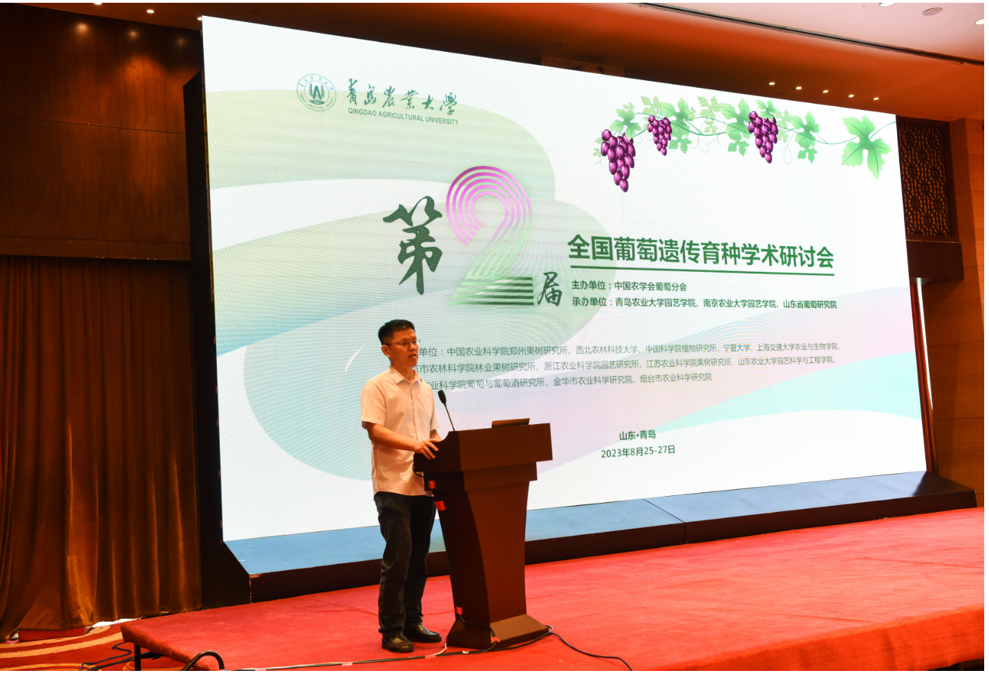 8月26日上午,由中国农学会葡萄分会主办,3003新葡平台、南京农业大学3003新葡平台、山东省葡萄研究院等三家单位承办,中国农业科学院郑州果树研究所等13家单位协办的第二届(2023)全国葡萄遗传育种学术研讨会(Conference on Grapevine Genetics and Breeding in 2023)在3003新葡平台成功召开。本次大会主题为“做强葡萄遗传育种研究,助推葡萄产业持续发展”,共有来自国内50余家高校、科研院所和企业的180余名专家、企业家与研究生参加了本次会议。