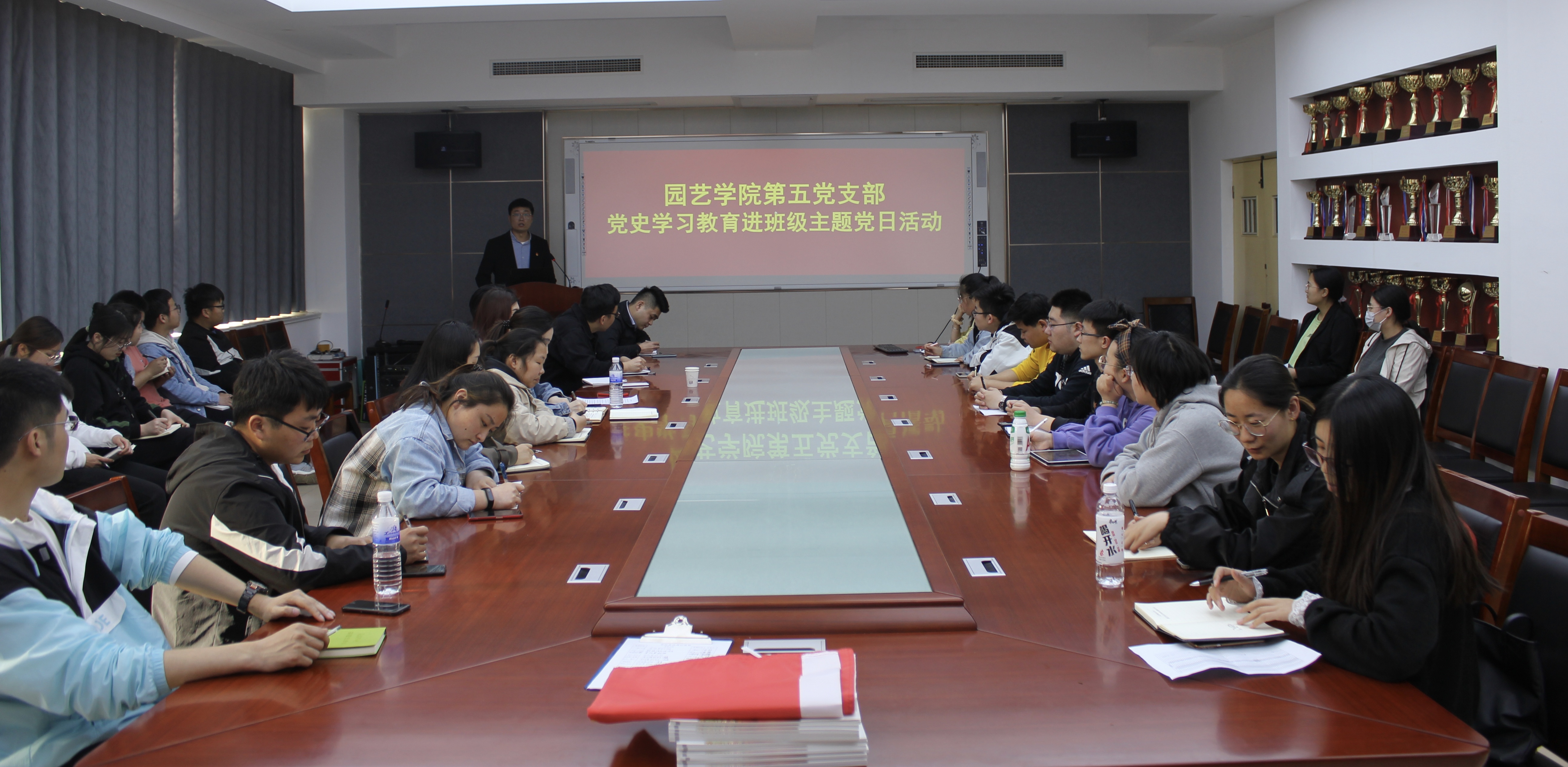 2021年4月16日,3003新葡平台第五党支部举行党史学习教育进班级主题党日活动,研究生第五党支部全体党员,2020级全体研究生参加活动。