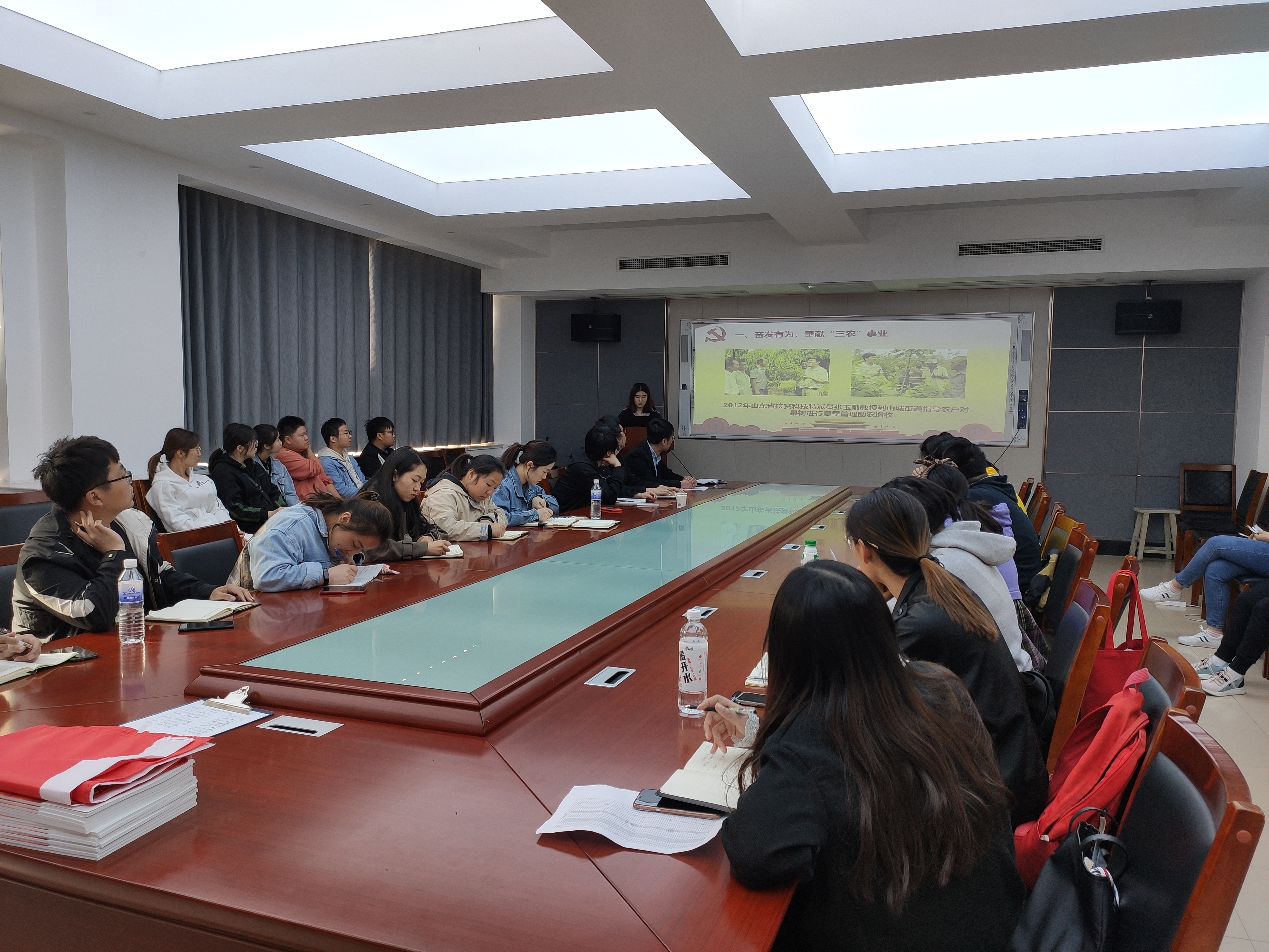 支部党员张书宁以将科技的旗帜插遍祖国的乡村为题,用身边科技特派员的例子向同学们讲解了科技特派员制度的发展历程与优越性。科技特派员制度推行22年来,坚持人才下沉、科技下乡、服务“三农”,队伍不断壮大,成为党的“三农”政策的宣传队、农业科技的传播者、科技创新创业的领头羊、乡村脱贫致富的带头人,使广大农民有了更多获得感、幸福感。实践证明,科技特派员这一源于基层探索的制度创新,填补了市场经济条件下的农技服务空白,打通了农业科技成果转化的“最后一公里”,满足了广大农民兄弟的迫切需求。科技特派员制度也为广大农技人员服务“三农”、把论文写在大地上指明了正确方向,开辟了有效途径,搭建了广阔舞台。