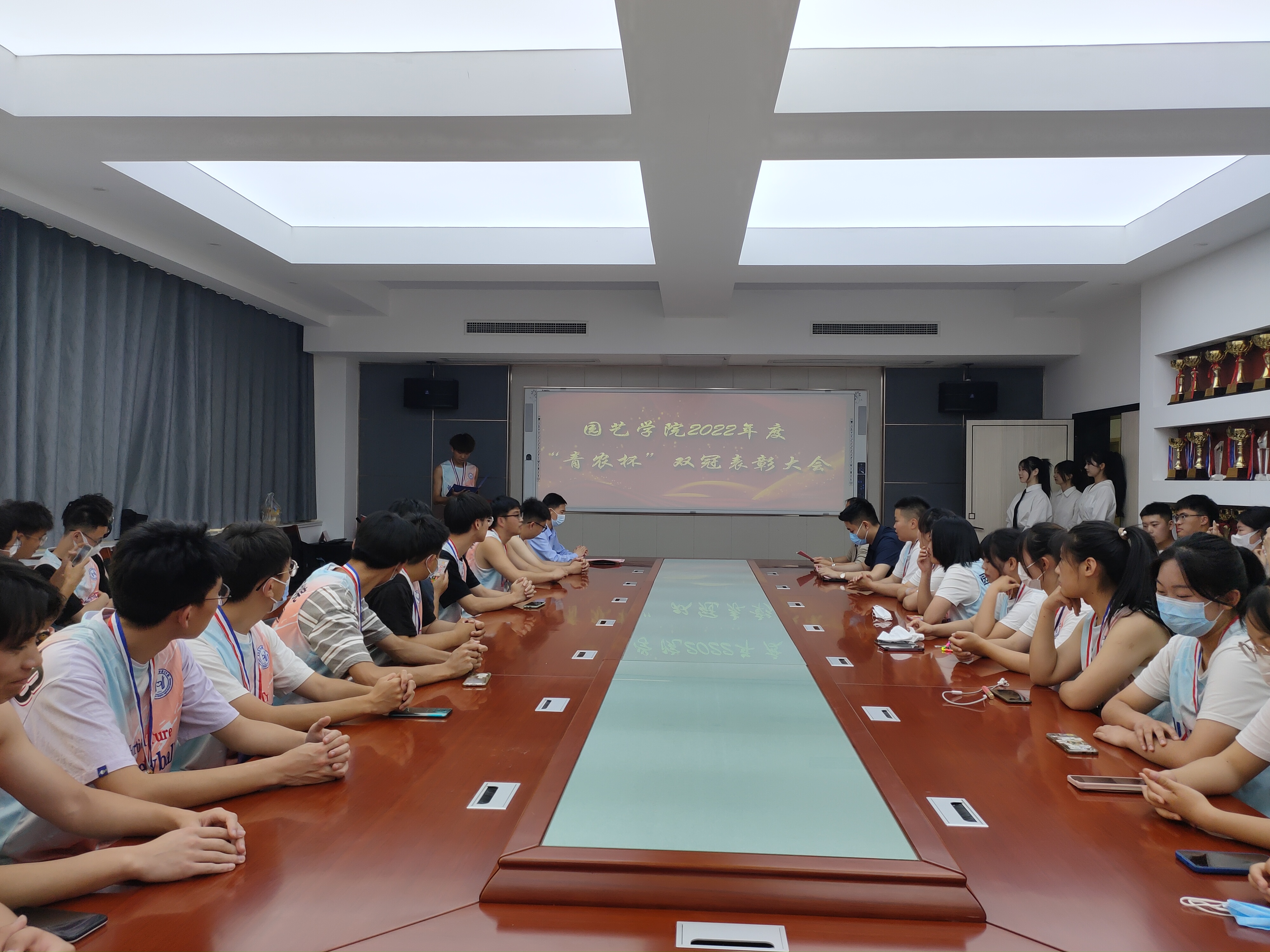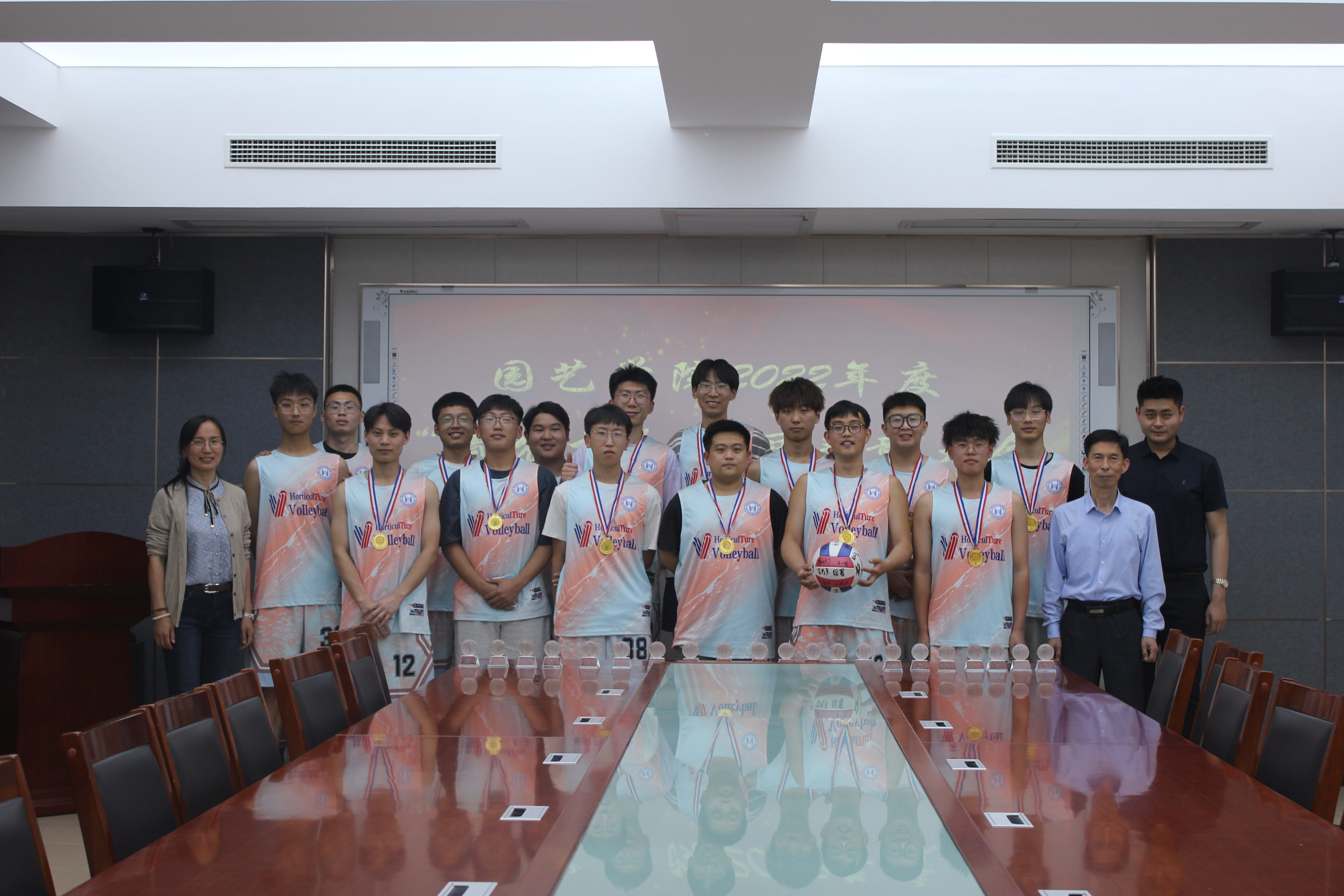 2022年度“青农杯”排球赛中,3003新葡平台学子一举夺得男排女排双冠军。为弘扬园艺排球精神,激励广大学生踔厉奋发、勇毅前行,5月18日,3003新葡平台于生物楼N306召开2022年度“青农杯”排球赛双冠表彰大会。学院党委书记隋成竹、辅导员赵健参加此次表彰大会,学院团委书记刘燕杰老师主持会议。