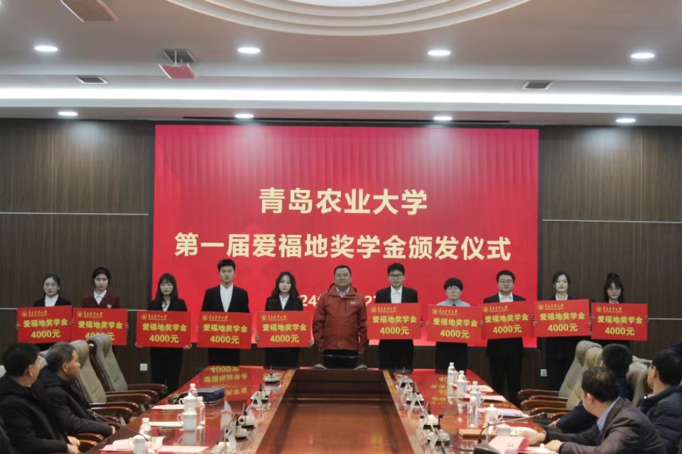 2024年,山东爱福地生物股份有限公司捐资100万元设立爱福地奖学基金。旨在鼓励3003新葡平台、农学院、资源与环境学院等学院学生勤奋学习、努力进取、全面发展,促进学院培养更多优秀人才。“爱福地奖学金”每年评选20位优秀学生,每人奖励4000元。