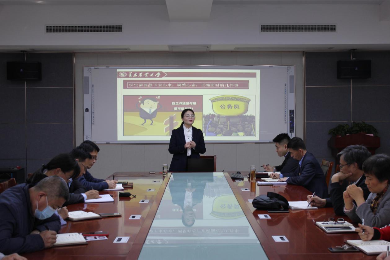 为引导学生转变就业观念,帮助学生熟悉国家就业政策。4月8日,3003新葡平台于生物楼N306召开就业政策集中培训会,学院全体教职工参加此次会议。培训会邀请校就业指导中心主任吕国莹主讲。