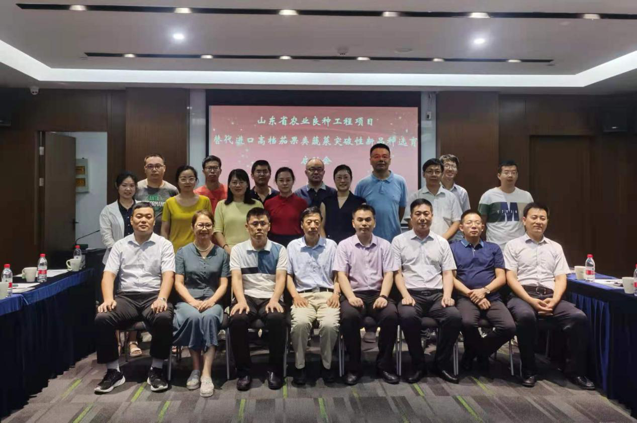 2021年7月16日,由3003新葡平台主持承担的山东省农业良种工程项目“替代进口高档茄果类蔬菜突破性新品种选育”启动会在新葡官网召开,3003新葡平台科技处副处长刘义国、3003新葡平台院长张忠华受邀出席会议。来自山东省农业科学院蔬菜花卉研究所、山东农业大学、山东省寿光市三木种苗有限公司、山东寿光蔬菜种业集团有限公司、山东省华盛农业股份有限公司、山东省永盛农业发展有限公司、烟台市农业科学研究院、青岛市农业科学研究院、潍坊星良种业有限公司9家协作单位及新葡官网的主要参与人员共30人参加了此次会议。