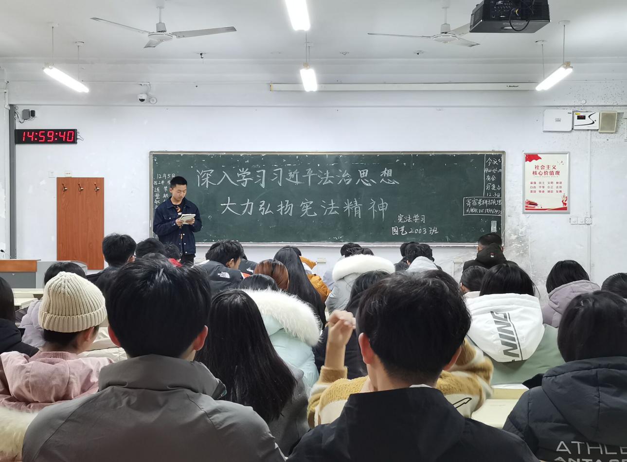 为深入学习宣传习近平法治思想,大力弘扬宪法精神,学生法治精神,3003新葡平台于12月4日在生物楼N306及教学区开展学习“宪法宣传周”的主题活动。