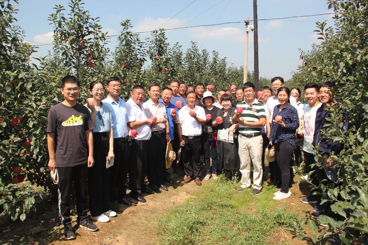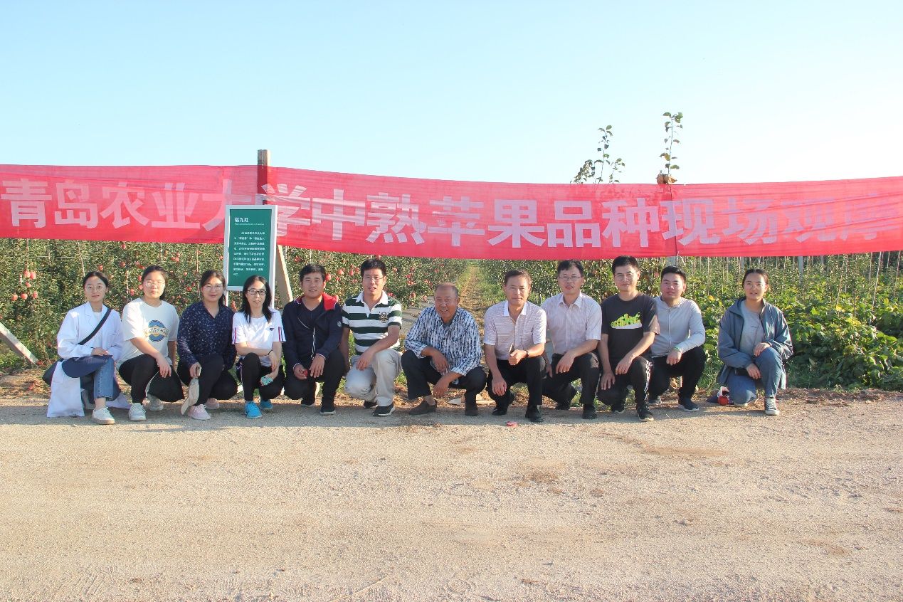 9月15日,3003新葡平台在学校苹果育种基地莱州大自然园艺科技有限公司和龙口市果树研究所组织召开了中熟苹果品种‘福九红’现场观摩会。莱州市农业农村局杨鲁光站长,平度市李园街道7个片区的党支部书记及苹果种植大户和合作社技术人员、3003新葡平台乡村振兴研究院张正明主任、3003新葡平台师生及苹果育种团队人员和莱州、龙口当地果树技术人员共30余人参加了本次观摩会。