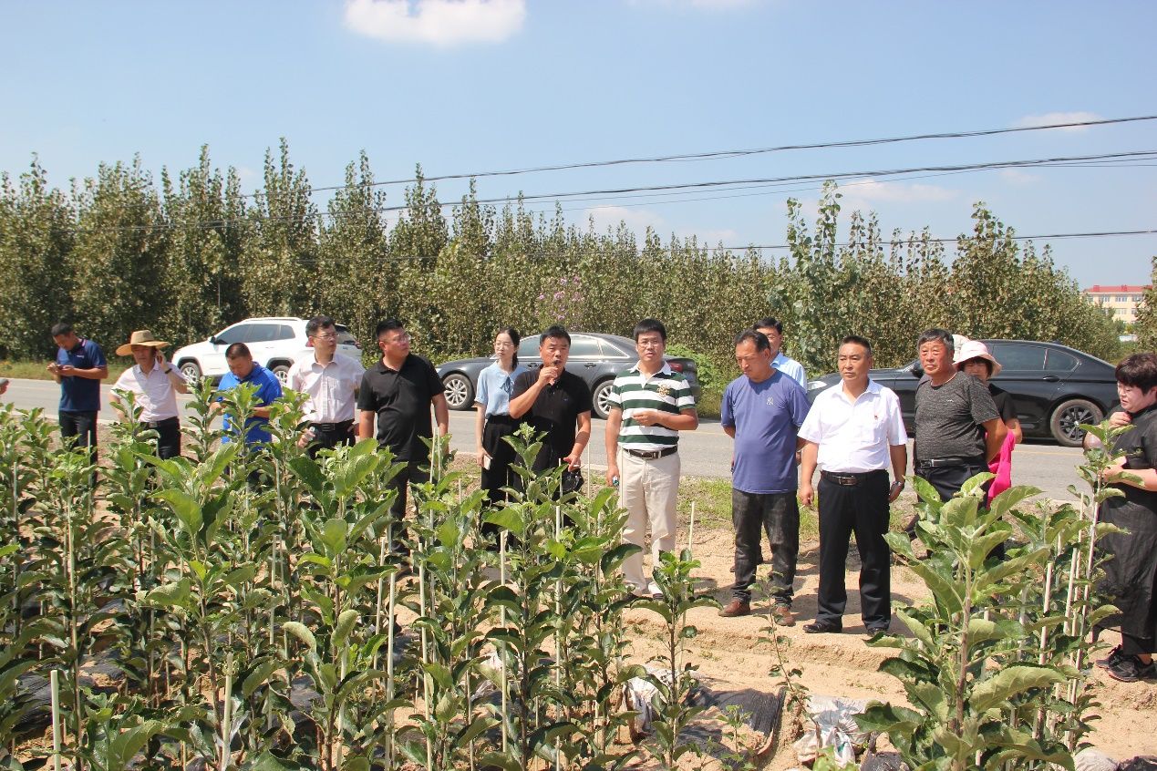 参会人员现场参观了莱州市郭家店镇小草沟和龙口市诸由观镇冷王村的‘福九红’示范基地及种苗育苗基地和苹果新品种区试品比试验园。在基地现场,莱州大自然园艺科技有限公司宋永果董事长和龙口市果树研究所王恩琪所长分别向大家介绍了基地‘福九红’的生长结果表现情况。