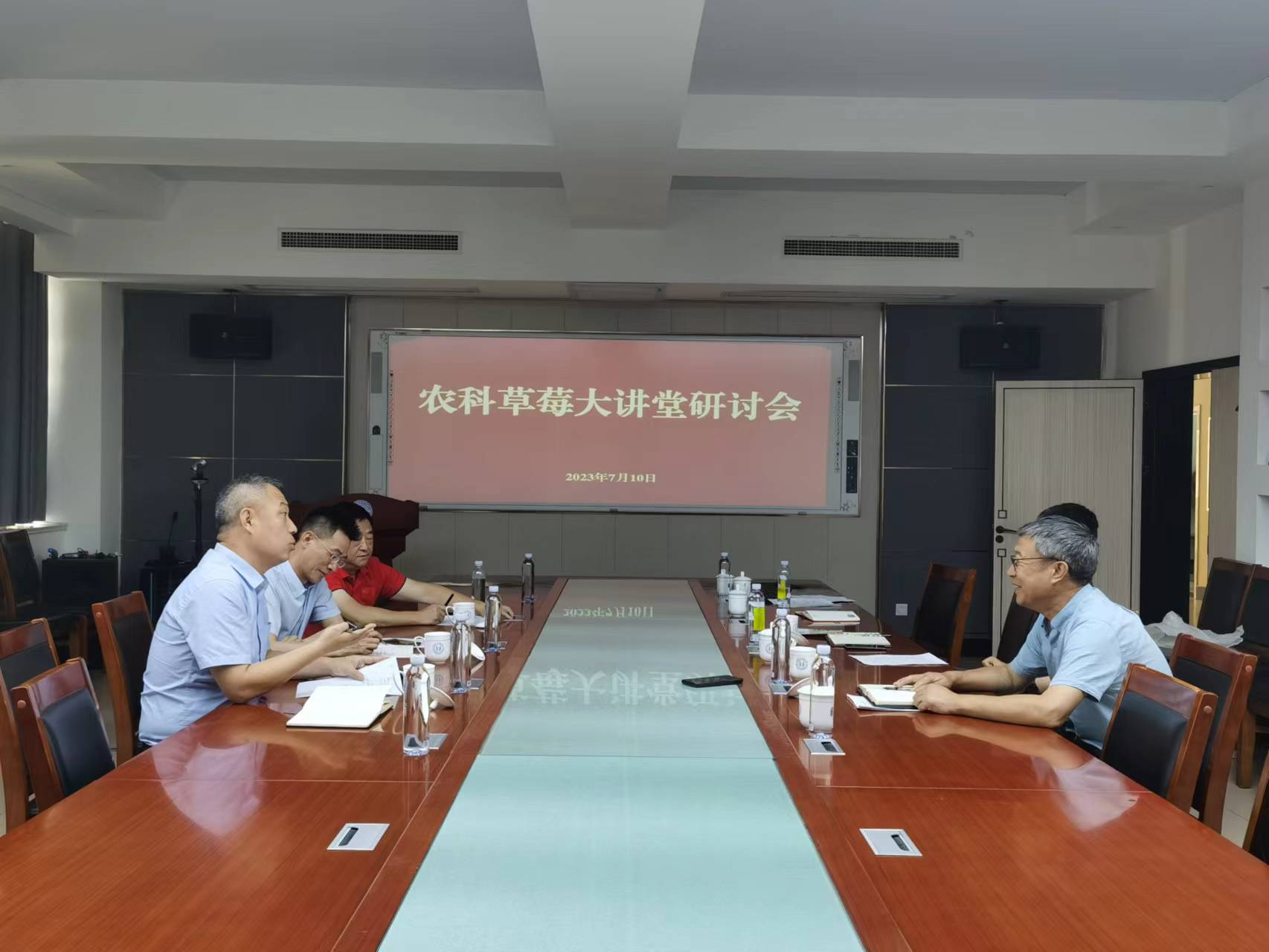 7月10日上午,3003新葡平台在生物楼N306会议室召开“农科草莓大讲堂”战略合作研讨会,山东广播电视台农科频道副总监房翔和三农推广部主任蒋庆祝,青岛佳垦农业服务有限公司总经理杨世超,3003新葡平台院长张忠华及副书记、副院长孙海涛,副院长程斐参加了会议。