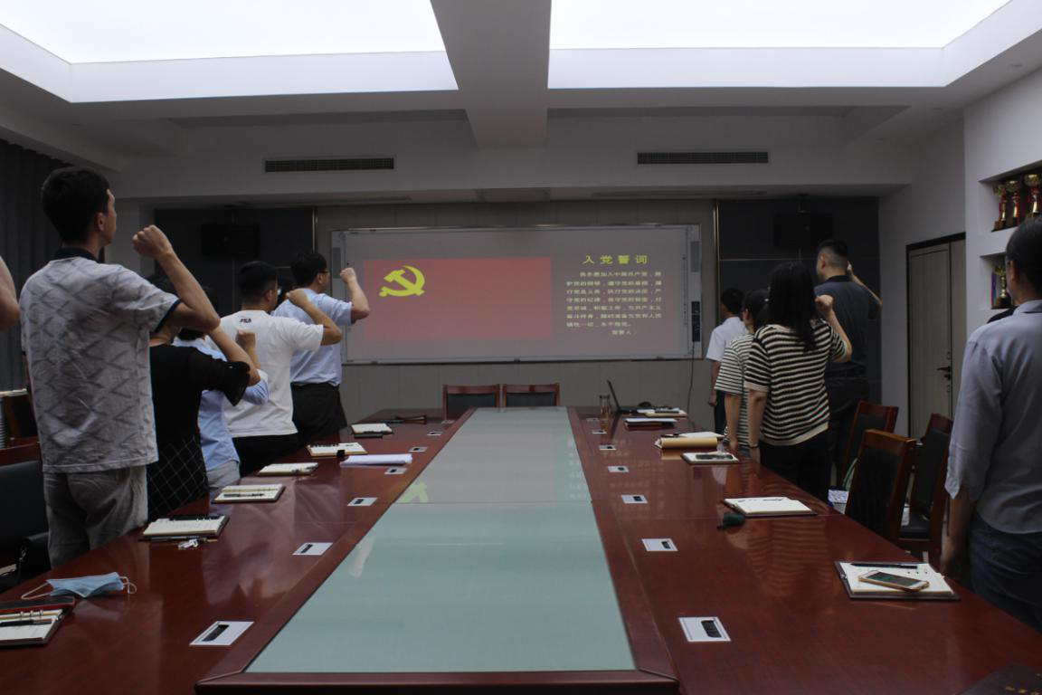 活动开始,全体党员集体观看了《中共二大会址纪念馆:首部党章的诞生与保存》视频。视频以独特视角纵观党的发展历程,阐述了中国共产党第一部党章诞生与保存背后的故事,使全体党员同志了解了党的第一部党章的制定过程,深刻体会了中国共产党的百年奋斗历史,更加坚定了不忘初心、战胜各种艰难险阻、与时俱进的思想观念。随后,全体党员同志在隋成竹带领下重温了入党誓词。