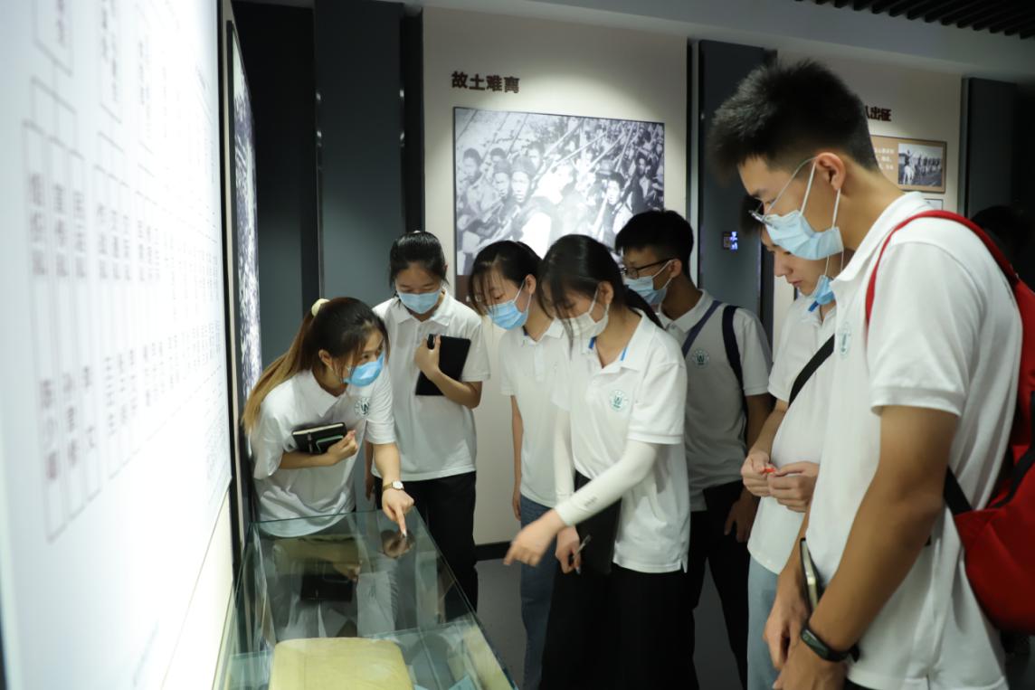实践团成员在学习探讨牛头镇抗日武装起义陈列馆陈设背后的故事。