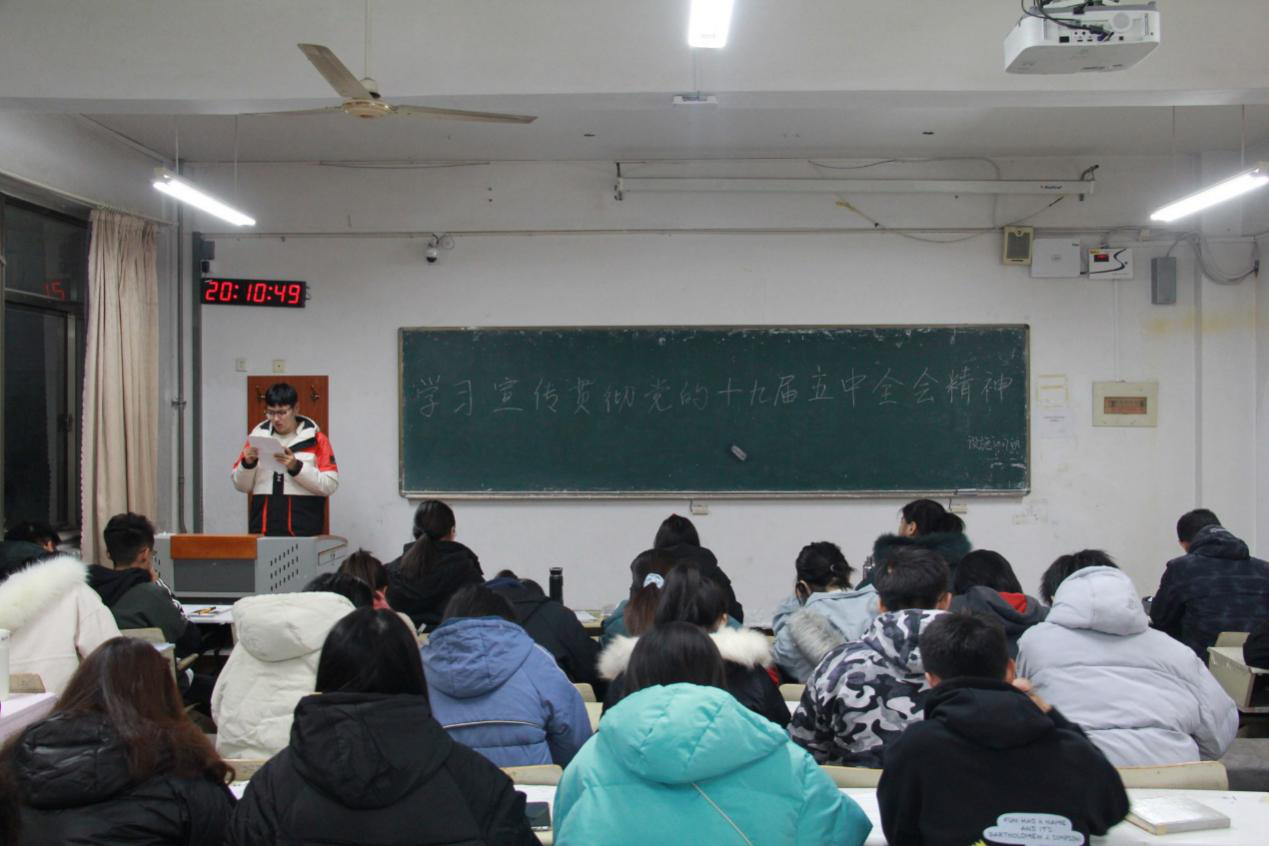 为深刻认识党的十九届五中全会精神的重大意义,领会和把握党的十九届五中全会的精神实质、核心要义,3003新葡平台于教学区开展“学习贯彻党的十九届五中全会精神”主题学习活动。19级、20级全体学生参加。