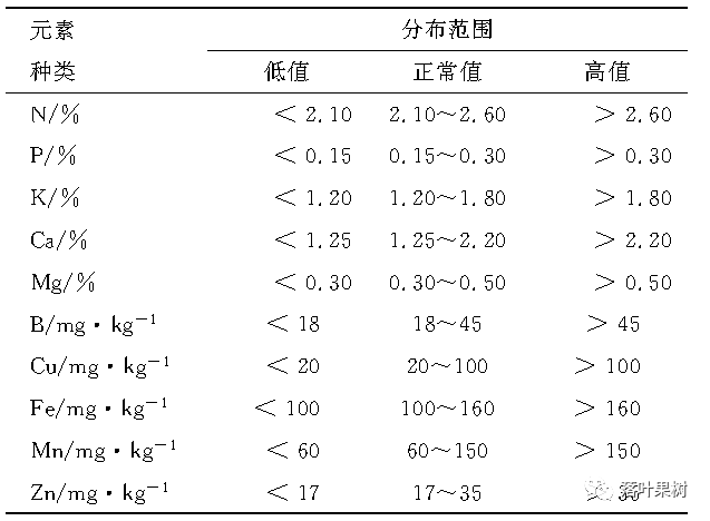基于以上论点,在大量研究、试验和分析测定的基础上,许多国家相继建立了各种果树的叶营养诊断标准并应用于果树生产。近几年本团队通过在代表性矮砧苹果园取样,分析测定和定点试验,初步建立了矮砧苹果叶营养元素的分布范围,提出了基于叶营养分析为主,结合土壤养分测定的苹果营养诊断技术体系,在生产中示范推广,收到显著成效。