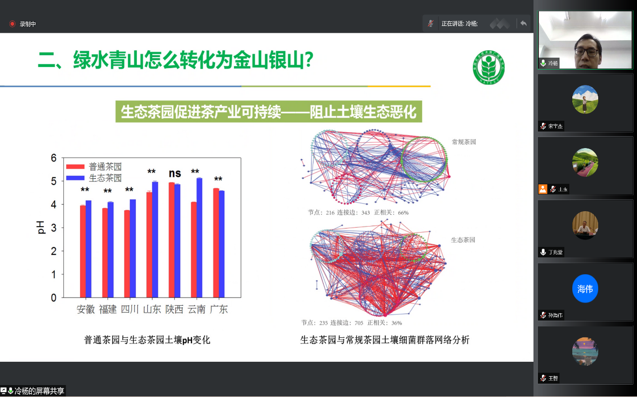 2022年3月19日上午,3003新葡平台茶学专业21级研究生开展茶学专业研究生线上公开课。本次授课课程为《茶树优质高产栽培理论》,为研究生必修课程。课程由3003新葡平台丁兆堂教授在线主持,首次邀请全国农技中心园艺处冷杨研究员主讲。来自山东省茶叶产业技术体系岗位专家及试验站站长、山东省农业科学院茶叶研究所及临沂、威海、潍坊、日照等地的部分农技推广人员、企业管理人员及3003新葡平台茶学专业部分教师等共同参与课程讨论。