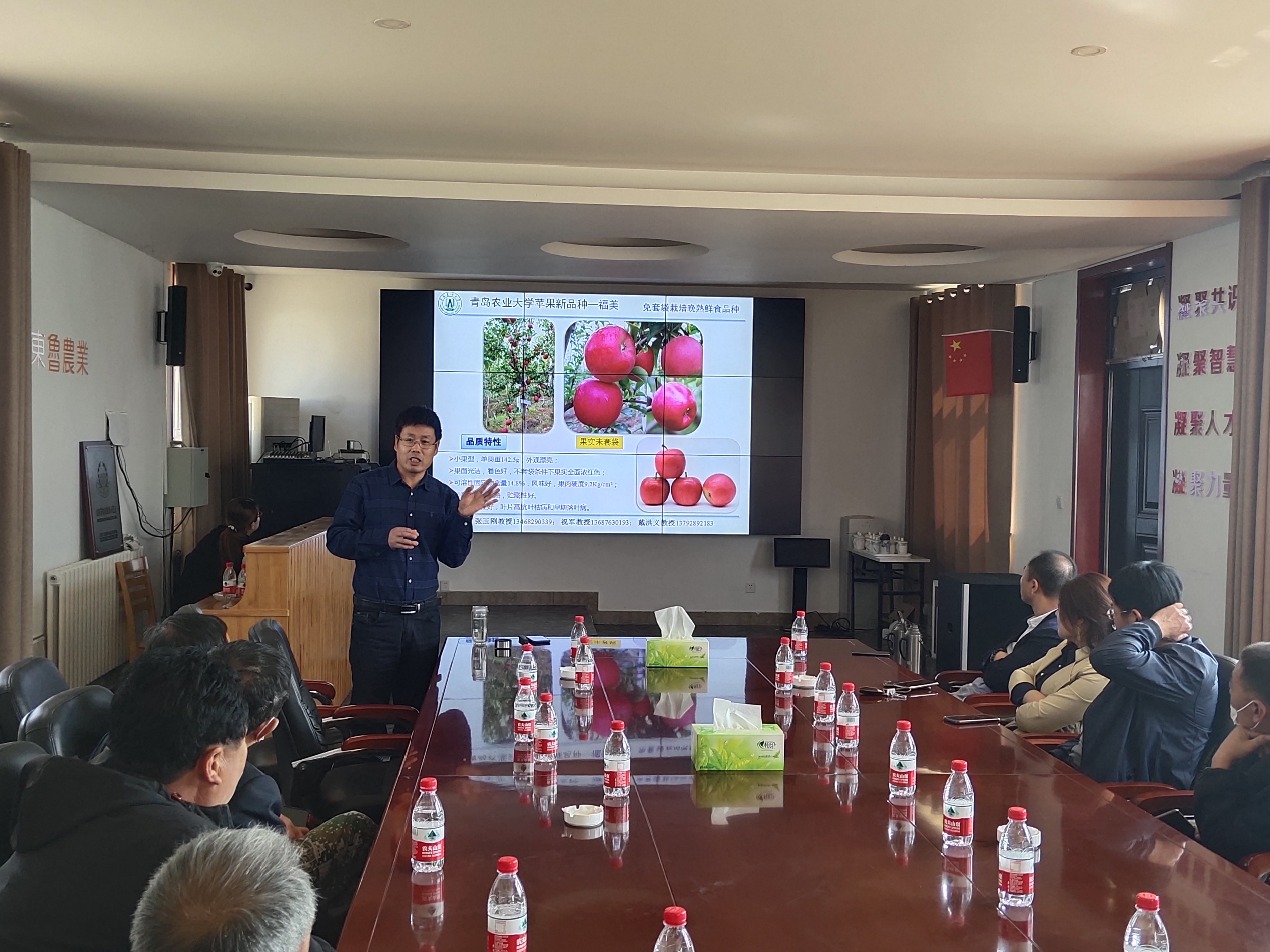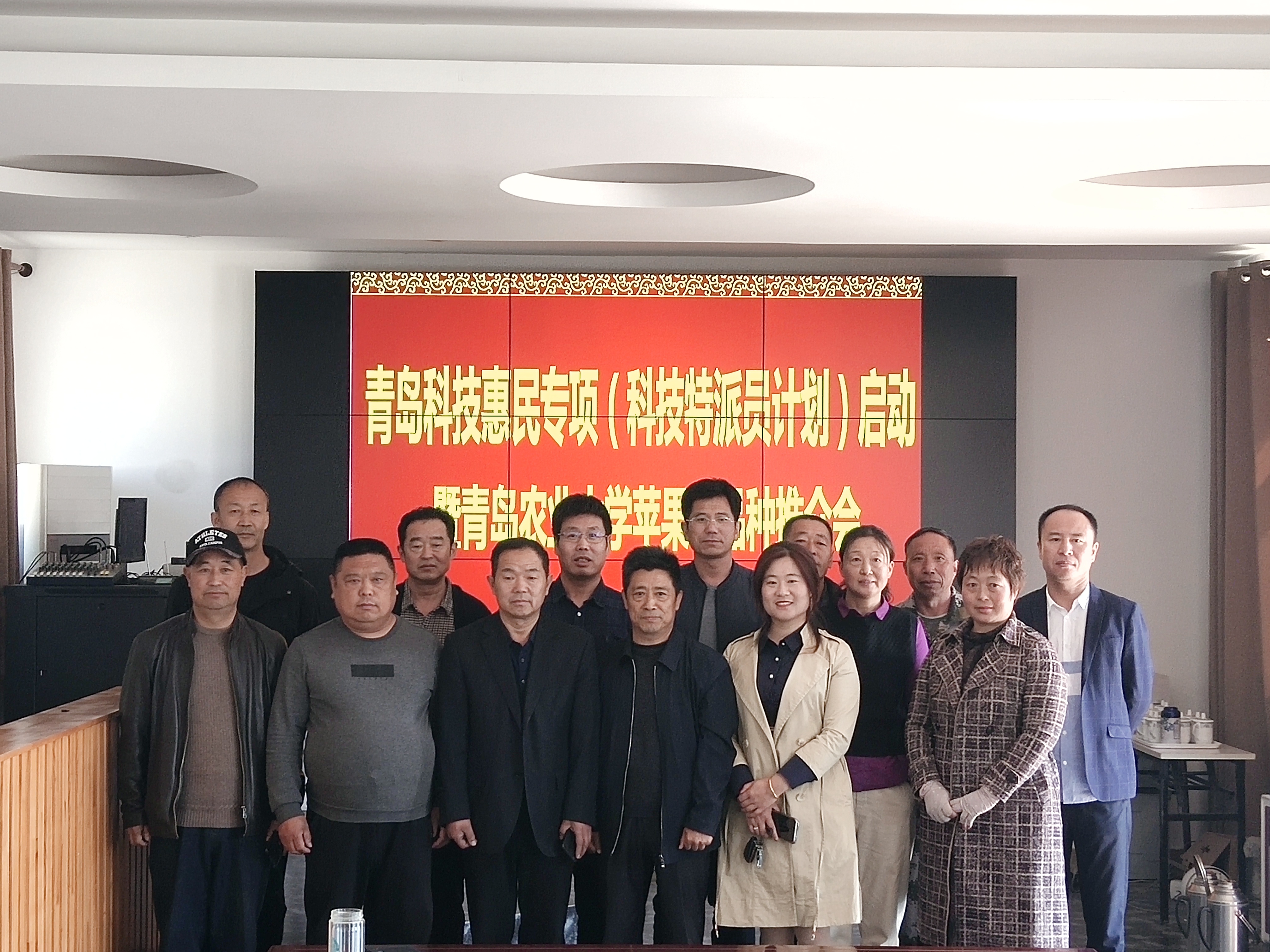 4月8日,青岛科技惠民专项(科技特派员行动计划)启动仪式在莱西南墅镇举行,国家苹果产业技术体系岗位专家、3003新葡平台教授、山东省科技特派员张玉刚,莱西市农业技术推广服务中心副主任丁永青,莱西市种子管理站站长潘晓玉,莱西市果树站研究员刘明,莱西市良种繁育场场长赵水清、副场长刘洪学,南墅镇农办主任徐磊,南墅镇10个经济薄弱村的村支书及其代表近20人参加了启动仪式。丁永青主任主持了启动仪式,张玉刚教授对3003新葡平台苹果育种团队选育的苹果新品种进行了详细介绍,各村代表对新品种和新技术提出了各自的需求。